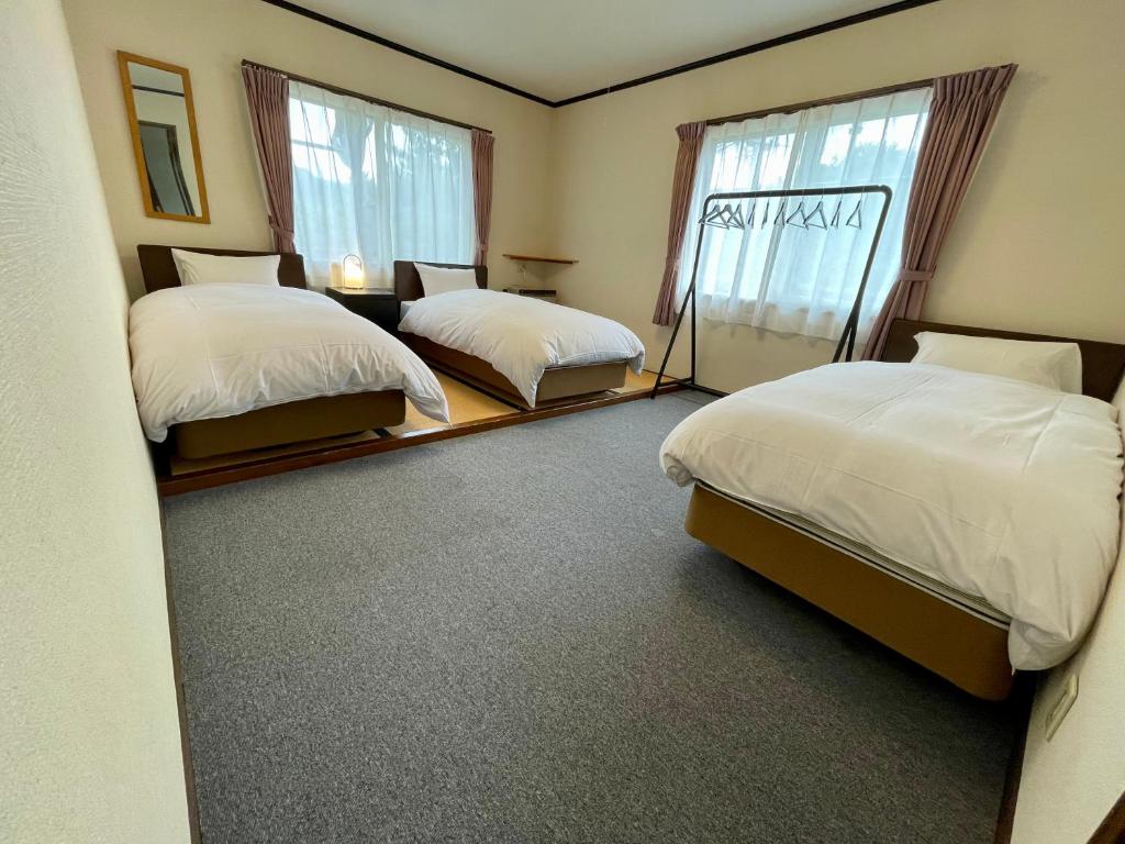 This Classic Triple Room features 3 single western style beds with shared bathroom facilities. It features a clothes hanging rack/storage, heating and linen.